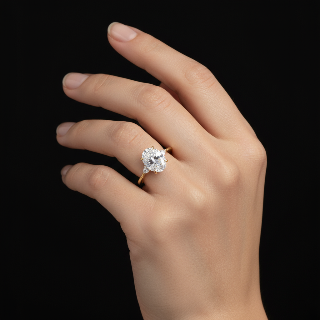 Classic simplicity defines this delicate setting, which features a thin precious metal band that gently tapers towards a pear-shaped diamond accent on each side of the center gem (1/10 total carat weight).