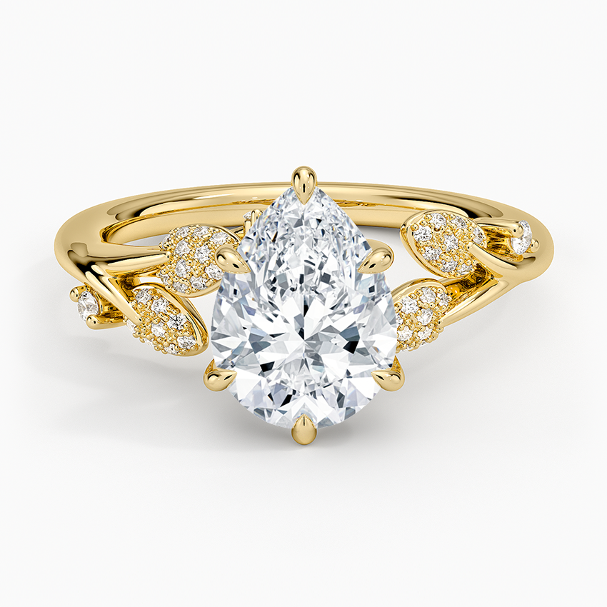 Micro-pavé diamonds adorn beautiful leaves in this unique nature-inspired design while claw prongs complete the look with a sleek finish (1/5 total carat weight).