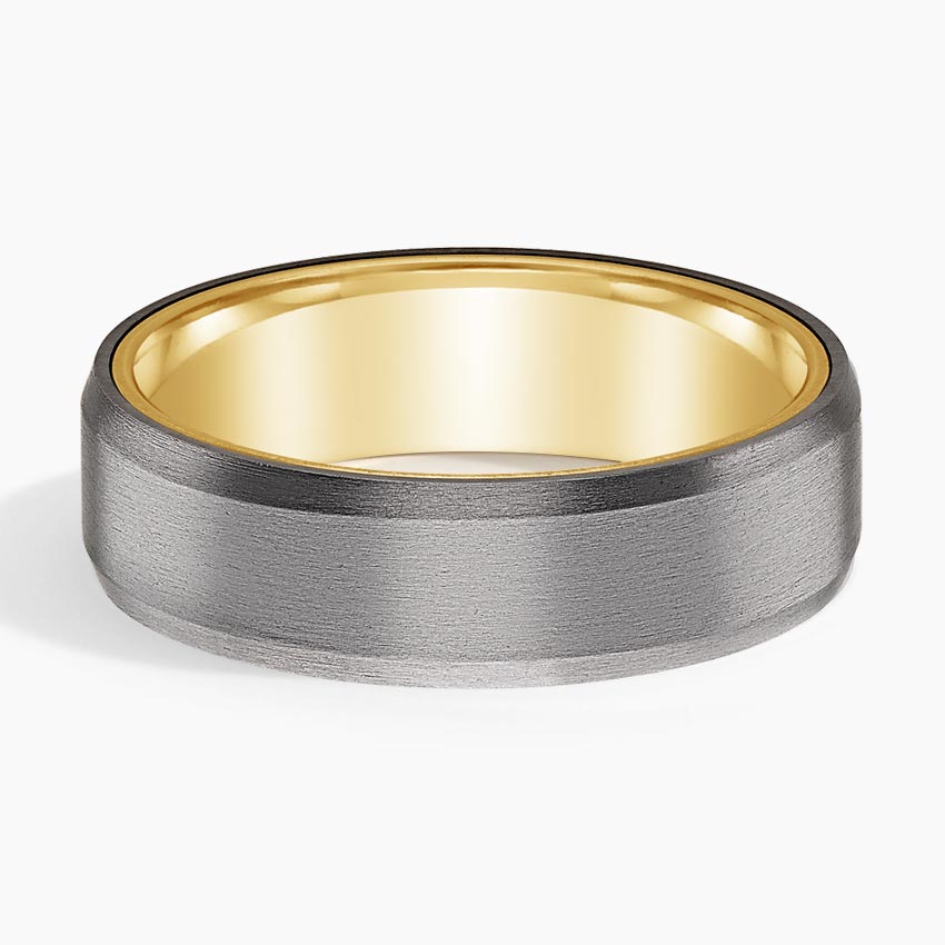 A sophisticated beveled edge adds classic charm to this contemporary mixed metal design that features a satin-finish Tantalum exterior and a sleek gold interior for a polished look.