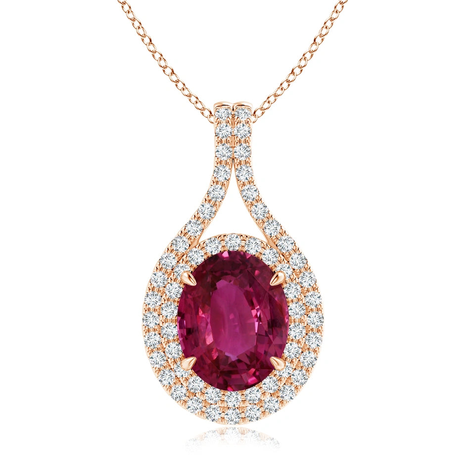 GIA Certified Oval Pink Sapphire and Diamond Double Halo Pendant