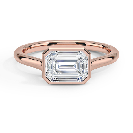 This beautiful, modern ring features an east-west bezel-set center gem with a sleek band for a contemporary look. The elevated bezel allows for maximum light play and accommodates a variety of wedding band styles to tuck underneath.