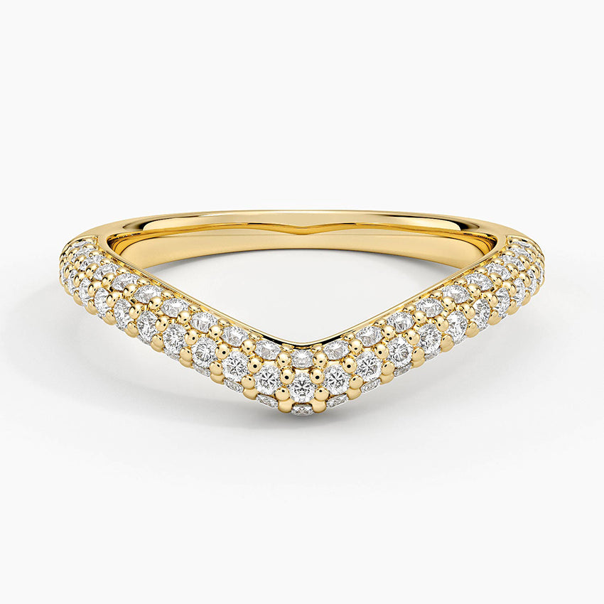 Shimmering lab diamonds adorn this classic curved style that's crafted to sit flush against many engagement ring styles.