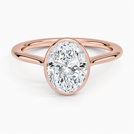 This beautiful, modern ring features a bezel-set center gem with a sleek, thin band for a contemporary look. The elevated bezel allows for maximum light play and accommodates a variety of wedding band styles to tuck underneath.