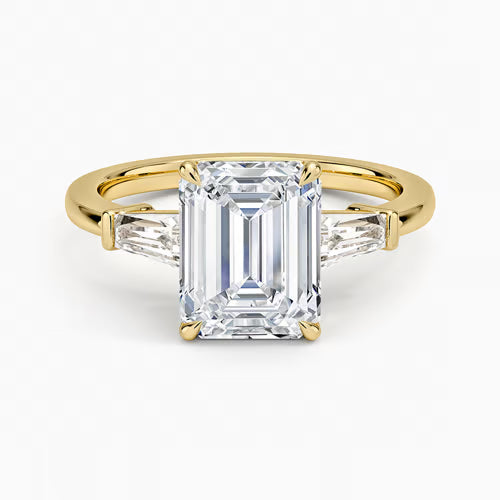 Two dazzling tapered baguette diamonds rest alongside the center gemstone for a glamorous, sophisticated look in this classic ring (1/2 total carat weight).