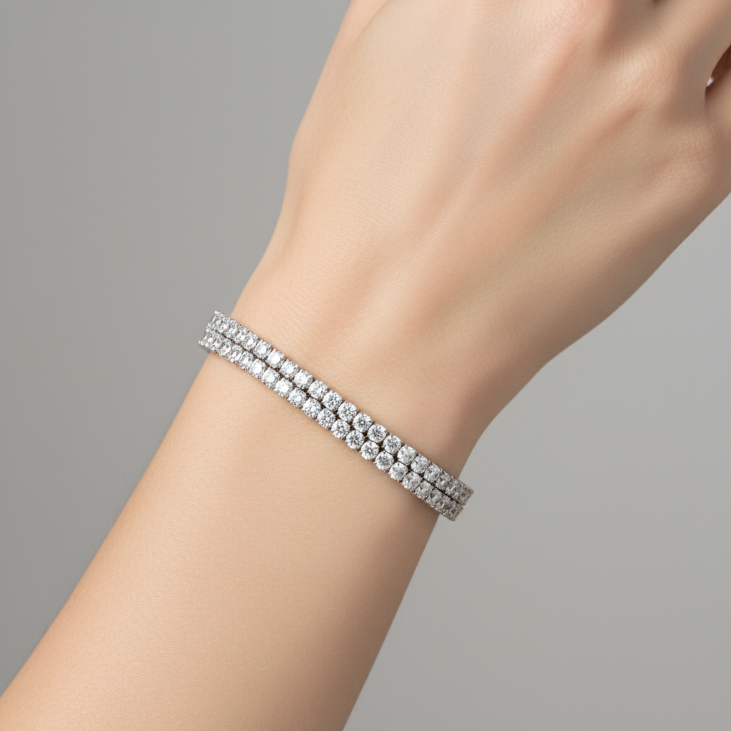 Double up on lab diamonds in this modern wrap version of a tennis bracelet. With two strands of shimmering stones on your wrist, this design adds extra sparkle to any look.