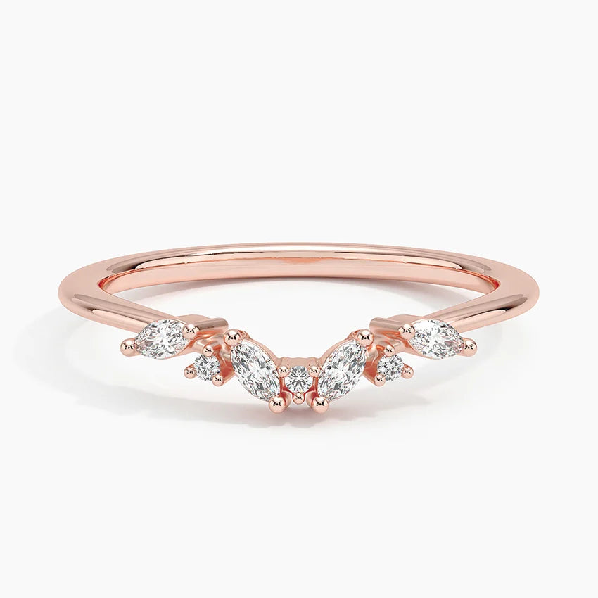Sparkling round and marquise-shaped diamonds meet at a point in this sleek chevron-shaped ring, perfectly styled to complement an engagement ring, stack with other rings, or wear by itself (1/6 total carat weight).